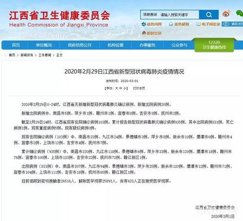 首先得说说咱们最关心的疫情情况。据江西省卫生健康委员会最新通报,今天江西新增了多少病例呢?别急,让我给你一一道来。